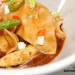 Sirve en cuencos el Wonton de pollo repartiendo el maíz, la manzana y los chiles en todos ellos. ¡Buen provecho!