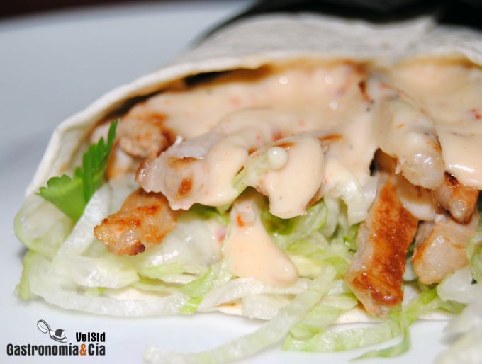 Para una cena rápida e informal, lo que no implica que no sea una comida sana y sabrosa, posiblemente os apetezca probar este Wrap de lomo con salsa de queso y ajo, pocos ingredientes pero muy bien avenidos, y gusta tanto a los adultos como a los niños.