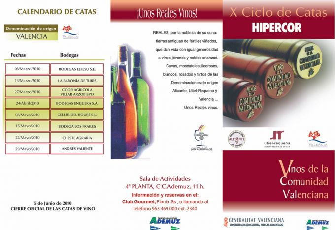 El Ciclo de Catas Hipercor cuenta con la colaboración de la Consellería de Agricultura, Pesca y Alimentación y los Consejos Reguladores de las Denominaciones de Origen de la Comunidad Valenciana, así, las catas realizadas en este ciclo giran en torno a los vinos valencianos, con 12 bodegas de la D.O. Utiel-Requena, 4 bodegas de la D.O. Alicante y 8 de la D.O. Valencia.