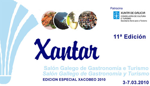 Xantar 2010, el Salón Gallego de Gastronomía y Turismo, es una feria que cumple su undécima edición y que tiene una especial relevancia por la celebración del Xacobeo 2010, recordemos que el Año Santo Xacobeo (Jacobeo) es aquel año en el que el día 25 de julio cae en domingo, algo que ocurre unas catorce veces cada siglo. Pero para conocer más detalles sobre esta cita, nada mejor que acceder al blog de Xacobeo.
