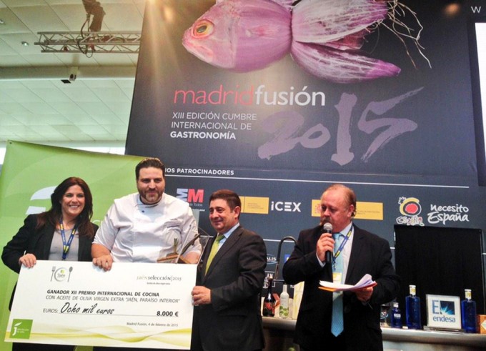 Hoy se ha celebrado el certamen del Premio Internacional de Cocina con Aceite de Oliva Virgen Extra ‘Jaén Paraíso Interior’ 2015 que organiza la Diputación de Jaén y que este año cumple su décimo segunda edición. El certamen ha tenido lugar en Madrid Fusión por segundo año consecutivo, ya os lo explicamos aquí, y vamos a por la noticia importante, el ganador de este concurso de cocineros y aceite de oliva virgen extra es Xanty Elías, chef del Restaurante Acánthum de Huelva.