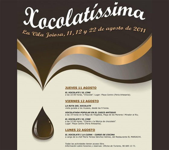 Aunque el verano deja algunas joyas de chocolate al margen, los eventos gastronómicos en torno a esta delicia que tantos apasionados aglutina no cesan, esta semana empieza Xocolatíssima 2011 en una de las ciudades con más tradición en la elaboración de chocolate, Vila Joiosa.