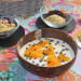 En la presentación está el yogur griego con naranja (su piel y unos pocos gajos troceados, los nibs de cacao y la hierbabuena, son hojitas pequeñas, pero si las tienes grandes se pueden picar. En pequeños cuencos servimos el resto de ingredientes para añadirlos al yogur antes de comerlo, bien mezclado. Está para repetir. ¡Buen provecho!